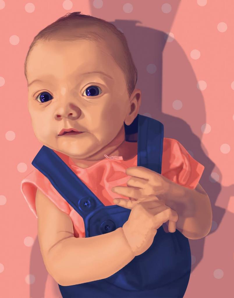 Commissioned portraits of people and animals created in Photoshop or Procreate.
